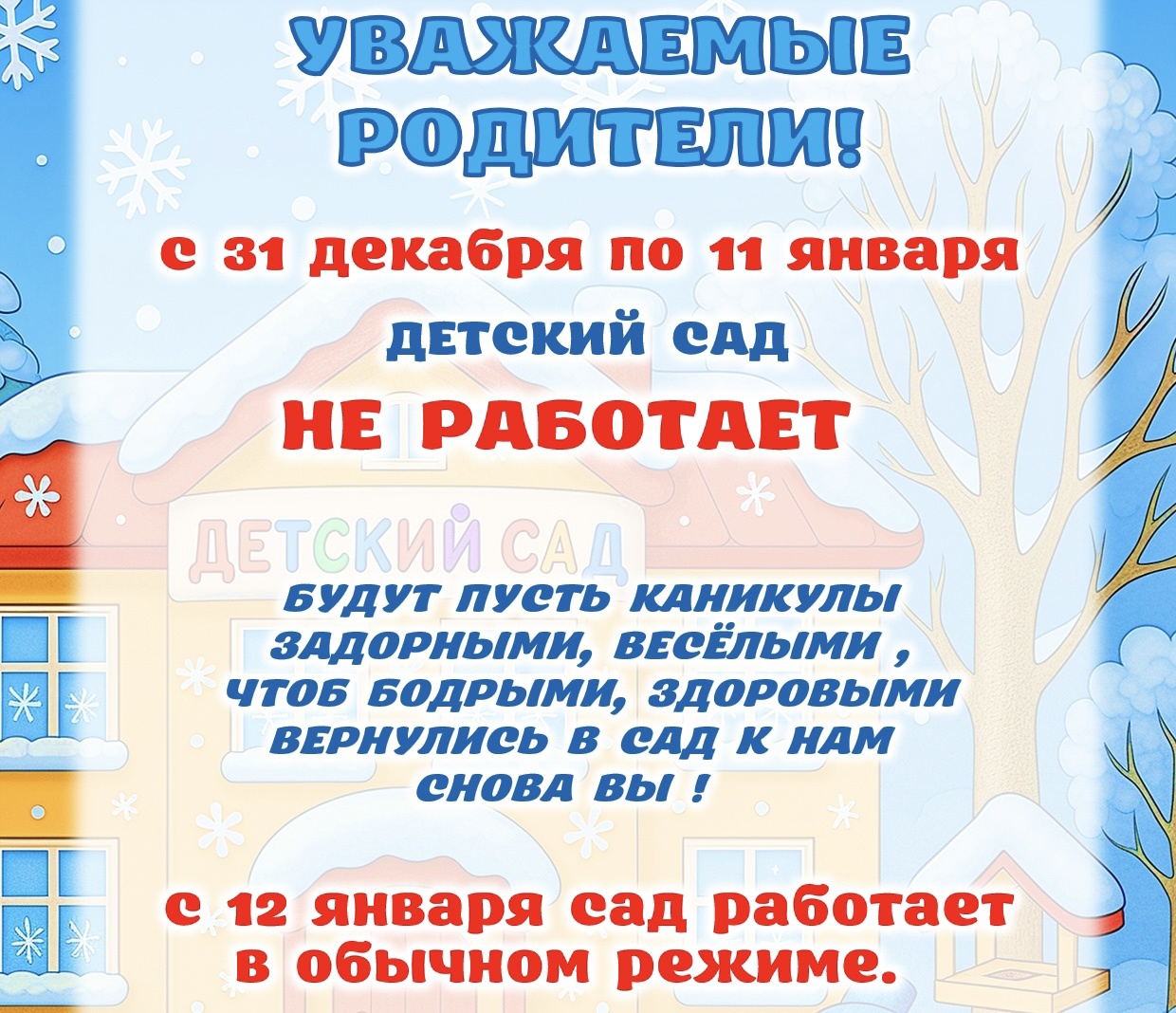 На страницах нашего сайта вы можете познакомиться с дошкольным учреждением, его сотрудниками. Сайт содержит информацию о реализуемых педагогическим коллективом программах воспитания и обучения детей дошкольного возраста, о его особенностях и традициях. Надеемся, что наш сайт во многом будет полезен как родителям воспитанников нашего детского сада, так и всем, кто его посетил!