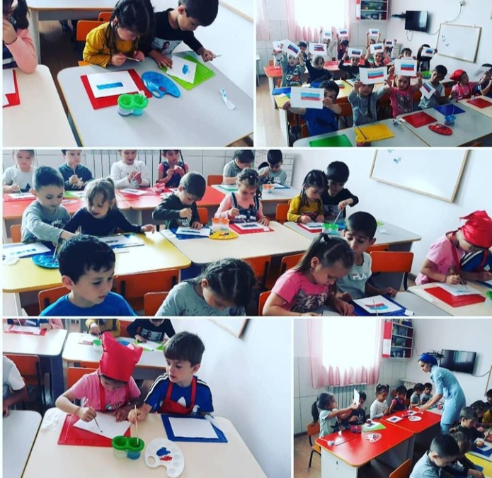 Рисование в средней группе на тему "Флаг России" .Задачи: учить детей рисовать фигуры прямоугольной формы и аккуратно закрашивать их; вызвать интерес к празднику "День России".