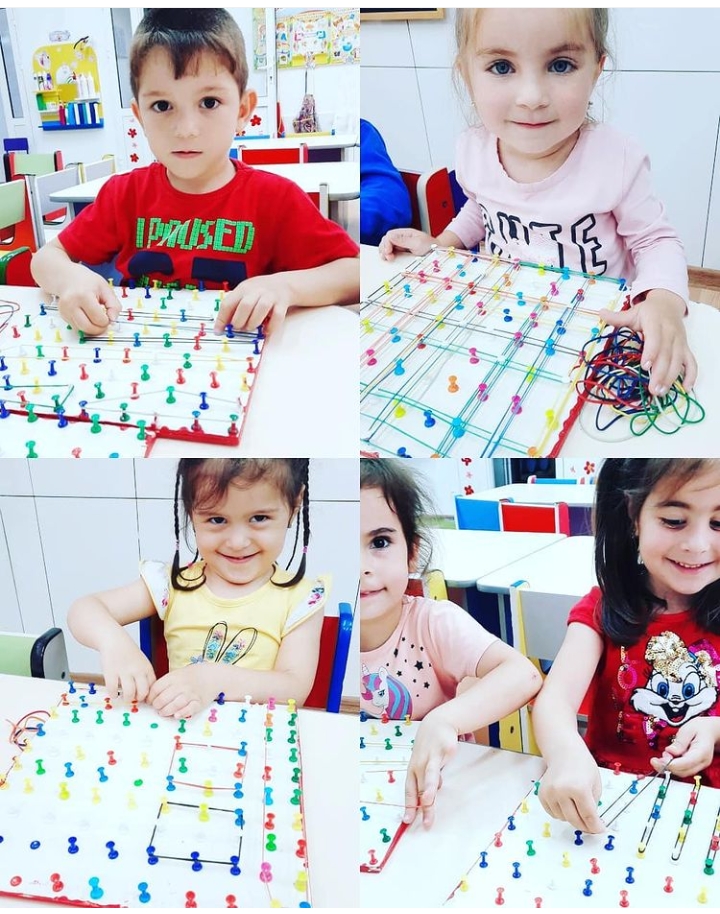 Цель: продолжать учить называть геометрические фигуры;Развитие мелкой моторики рук🤗Воспитатель Э. Б. Козбаева