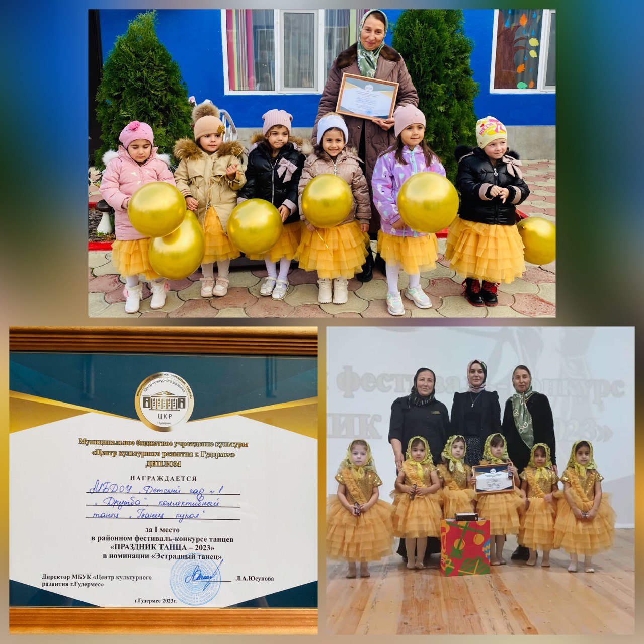 24.11.2023Сегодня наш садик принимал участие в районном фестиваль - конкурсе среди воспитанников детских садов Гудермесского муниципального района "ПРАЗДНИК ТАНЦА 2023" и заняла I место в номинации "Эстрадный танец".