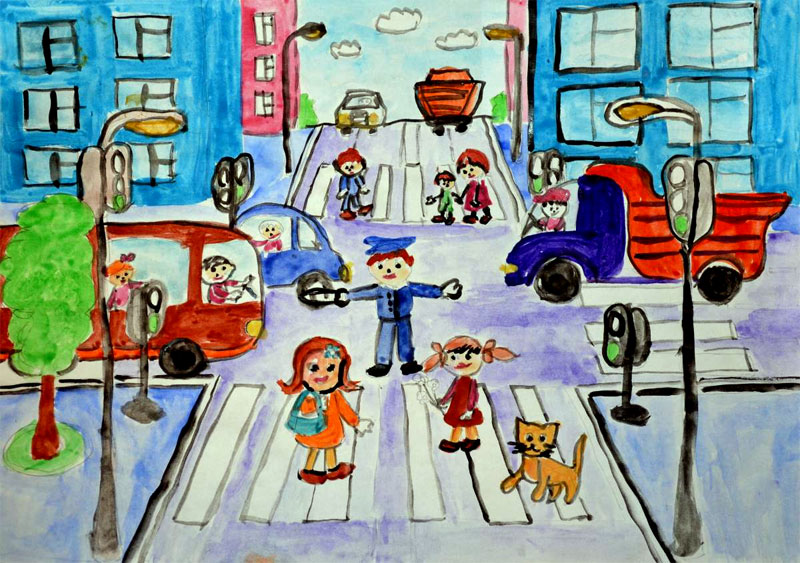 Выставка семейных рисунков по БДД "Мы за безопасное дорожное движение"