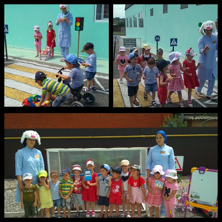 Цель:создать у детей радостное настроение, уточнить знания детей о различных видах транспорта, о сигналах светофора, познакомить детей с элементарными правилами дорожного движения.